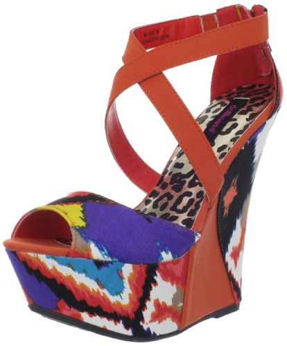 Buy Dollhouse Women's Mayans Wedge Sandal,Orange Multi,7.5 M US Now