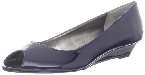 Feel pretty every time you slip into the Bandolino Sylvana 3 pump. This women's dress shoe is offered in patent or metallic leather and has a peep toe for feminine, peek-a-boo polish. The self-covered wedge heel lends a touch of flattering elevation to any ensemble. Underfoot, a lightly cushioned footbed and synthetic sole put the finishing touches on the Bandolino Sylvana 3 slip-on dress shoe.