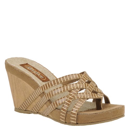 • This sandal's slender straps give it striking style from any angle • Faux leather upper with thong-style toe post • Lightly padded footbed • Manmade sole • Lightweight 3-1/4" EVA wedge heel