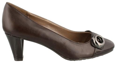 Feel pretty and walk in comfort with this classic, never-goes-out-of-style closed toe pump with prominent button ornament. This office appropriate dress shoe features an attractive aged champagne sock lining and The Soft Delight comfort system for shock absorption and all-day cushion.