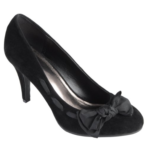 Step out of the ordinary in these chic stiletto pumps from Journee Collection. These faux suede pumps feature almond toes and charming bow and ribbon details.
