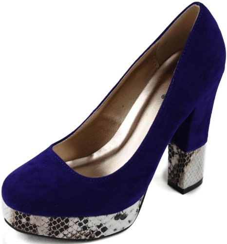Material: Man Made Velvet Material. Brand: Qupid Heel Height: 4.75 inches Heel, 1.5 inch platform (Approx) Product Code: Trish-20 Blue Velvet Soft smooth velvet material, lined with snake skin platform bottom. Round Closed toe front, Great with summer floral outfits, or for work. Like this shoes? Please let your friends and us know