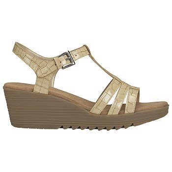 Do a happy jig whenever you slip into the Aerosoles Jitterbog sandal. This women's platform wedge sandal has a croco-print faux leather upper with an adjustable buckle strap at the ankle for a secure fit. Amalfi-wrapped for a streamlined look, the cushioned footbed lends moisture-managing support and a soft feel to the Aerosoles Jitterbog wedge sandal, which has a scored midsole and diamond-pattern rubber sole for shock absorption and a sure step.